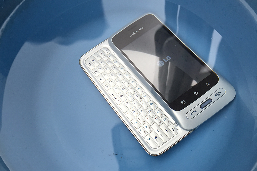 | 一方、Optimus chat L-04Cは水没後にも関わらず普通に動作を継続。何気に生活防水レベルあるのか…… |