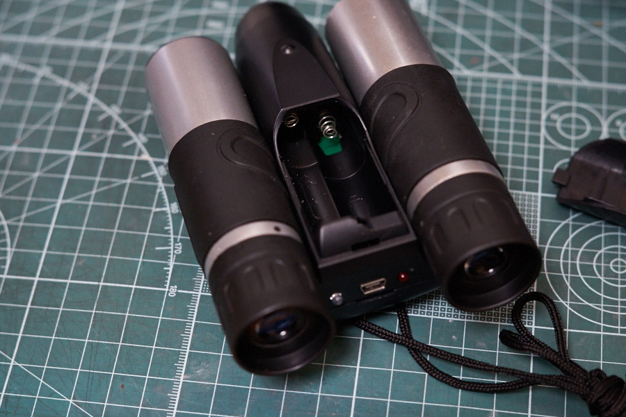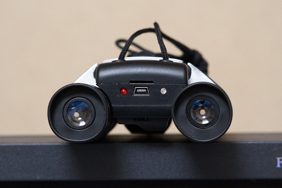センサーの画素数は130万画素で、撮影解像度は静止画1,280×960ドット、動画640×480ドット。絵素材用としては厳しいが、双眼鏡で見つけた「この瞬間!」をメモとして残しておくにはいいだろう。電源は単3乾電池×2で、液晶ファインダーもないため、そこそこ長時間動作しそう。本体上面のボタンで電源オン/オフができるので「必要になるまで電源オフ」という運用も可能だ。