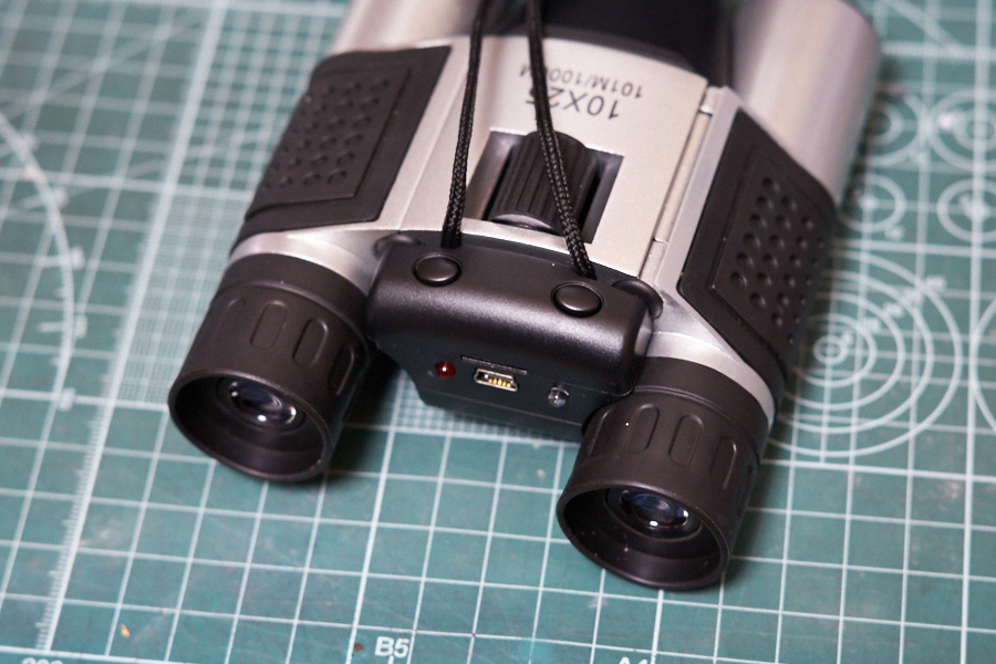 このDN-12393は「デジタル10倍双眼鏡」という製品名であり、ネーミングからすると「10倍表示のデジカメ」という印象も受けるが、双眼鏡単体では普通の光学式。普通の双眼鏡に撮影機能がついた、というイメージで、電源オフでも双眼鏡として利用できる。