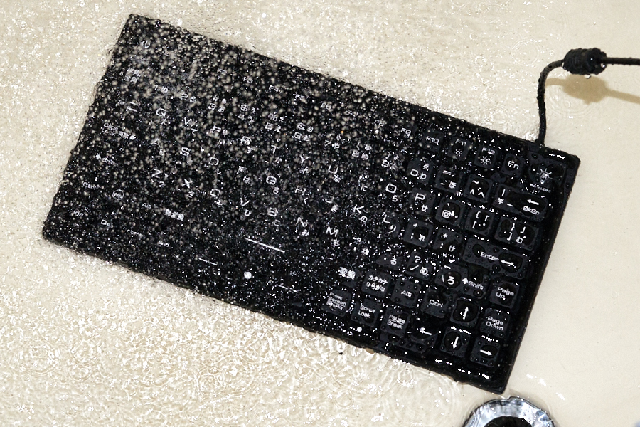 弊誌読者諸氏の中には、年に1度はキーボードからキーを外し、キレイに水洗いしている人がいることだろう。多少面倒と思いつつ清掃しているハズだ。うっすらと防水キーボードがあれば、ザブンと洗うだけで楽ではないかと考えたこともあるだろう。そんな諸氏におすすめのアイテムが今回の防水キーボード。例によって名前そのままの製品だ。