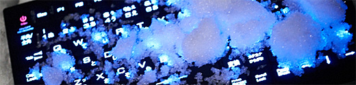 | タイミングよく降雪していたので、突き立ててみた。こういった遊びのできるキーボードでもある |