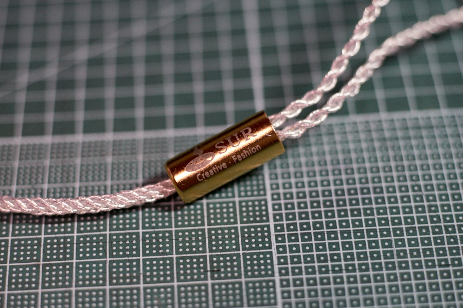 付属のケーブルは編み込みタイプで耐久性を重視したもの。歩きながらだと、ケーブルのすれる音が気になってしまうので、固定させるアイテムが必要になるだろう。また、LRの表記がクリアパーツ上に用意されているため、出先で確認しにくく、少し戸惑うことがあった。このあたり、ハウジングの上下で判断するか、付属の低反発ウレタンイヤホンチップが青と赤である部分を活用するといいだろうか。