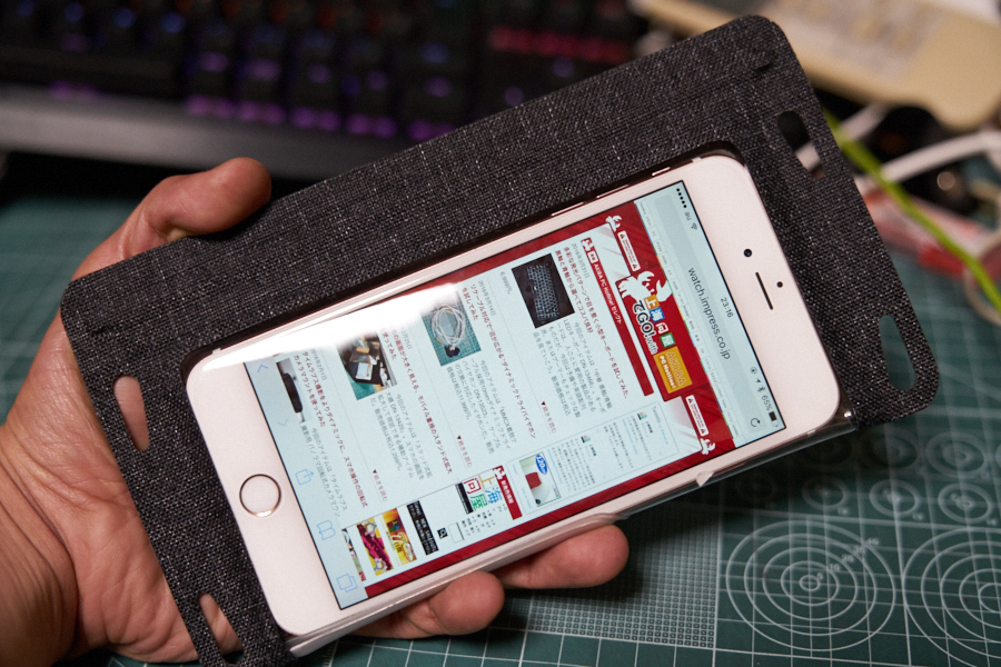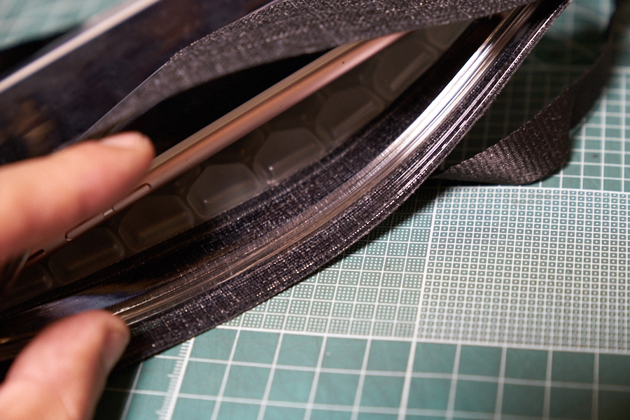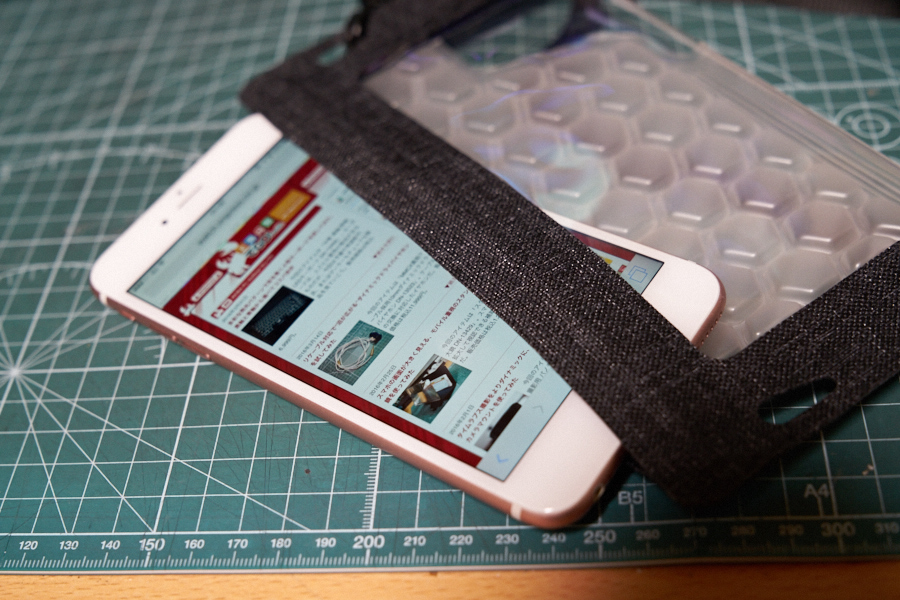 厚みについては、余裕のある作りとなっている。6インチ版であれば、iPhone 6s Plusまで、8インチ版であればiPad miniシリーズまで対応という認識でいいだろう。ただ、今回試した6インチ版にiPhone 6s Plusを入れてみたところ、厚みには余裕はあるが、縦横についてはギリギリだった。