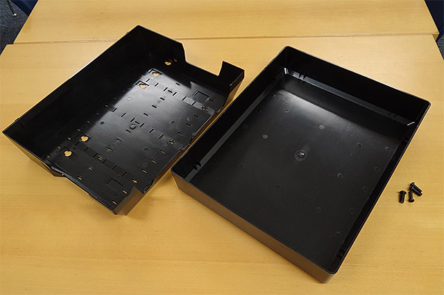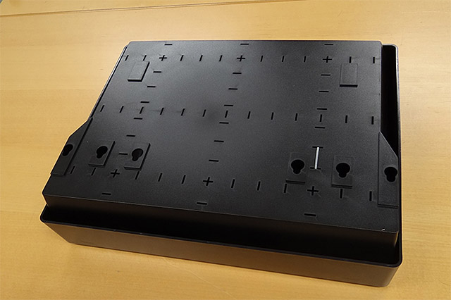 サイズは425mm×335mm×103mm 。横幅でいうとフルサイズのAV機器に近く、映像ケーブルなどをモニターに対して水平に接続する仕様のものだと干渉しやすい。まずはVESA規格200/300/400mmであるかを確認しよう。また素材はABS樹脂なので、自己責任になるがドリルにてネジ穴を追加することもやりやすい。