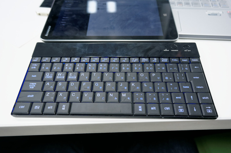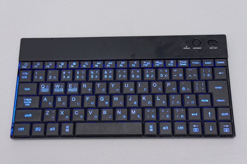 横画面時のiPadシリーズとほぼ同じ幅、横238mmのバックライト付き小型キーボードだ。「iOS、Android、Windows」と3つのOSに対応、ショートカットキーも利用できるため、Windows 8インチタブレット用でもジャストな製品である。