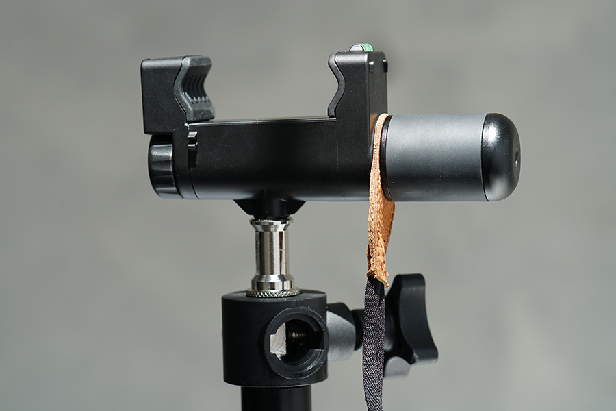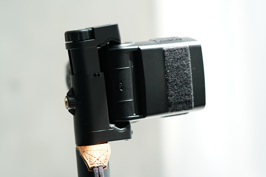 1/4-20UNCの三脚穴が3つあり、かつアクセサリーシューがあるため、スマホ用だけでなく、デジタルカメラでの撮影補助アイテムとしての可能性も秘めている。たとえば、ライトスタンドとライトの間に挟むこともできるし、ホルダーにストロボを挟んでしまうことも可能だ。アクセサリーシューにアダプターを挟めば、デジタルカメラにスマホと一緒にセットすることもできる。