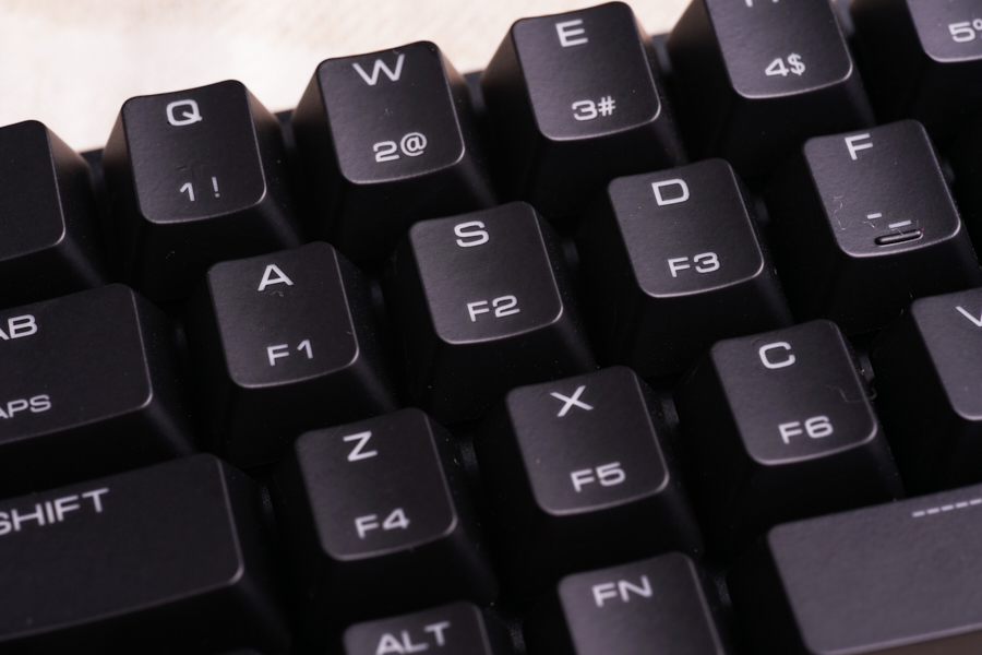 また、ゲーミング目的で試してみたところ、右Shiftキーの押しやすさだけでなく、AキーとSキー、DキーにF1~F3が割り当てられているため、アクションの実行が楽だった。F4以降も3列目にあるため、なるべく指を動かしたくない場合にも都合がいい。
