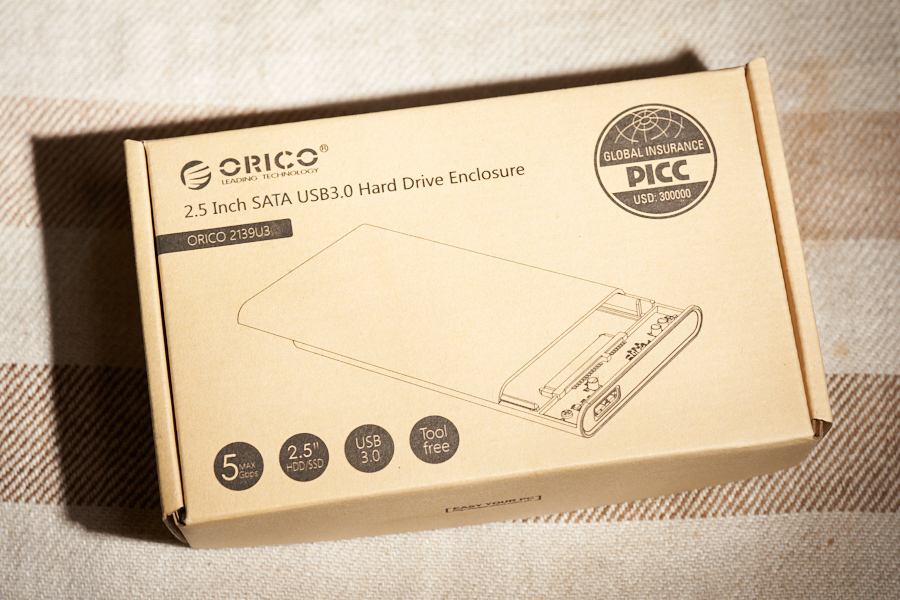 また、モバイルノートPCはSSDやM.2にシフトしており、ストレージ容量は画像や動画ファイル向きではない。その結果、外付けHDDが必要になるシーンも地味に増えている人が多いハズだ。というわけで、本製品。USB 3.0接続ながら価格は税込1,299円と手頃、かつクリアでカッコイイ外付けストレージケースである。