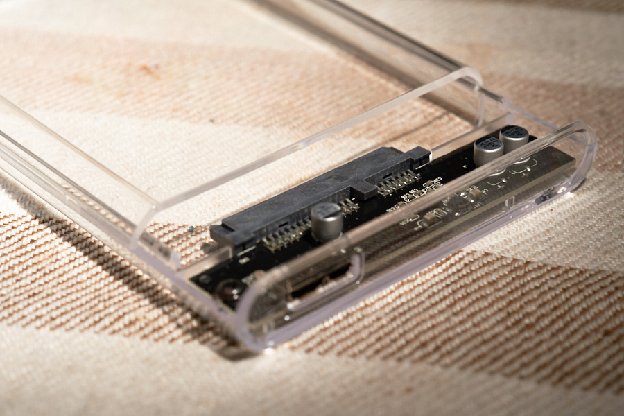 クリアパーツを採用した2.5インチHDD/SSD対応外付けケース、基板やラベルも視認可能