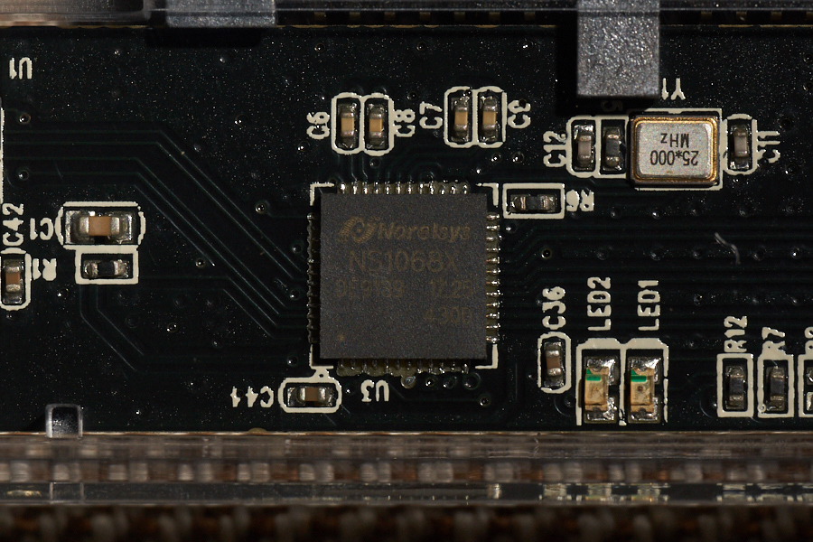 取り付けはネジレスで、ケースをスライドして開き、ストレージを斜めにスロットインさせることで取り付けすることができる。取り外しもその逆の手順でいいのだが、端子とコネクタにややテンションがかかりがちで、頻繁なストレージ換装には向いていない。なお、搭載コントローラーはNorelsys NS1068Xだ。
