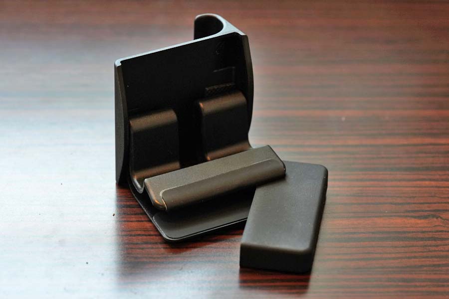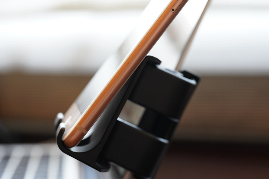 またジャケットやバンパーを装着している場合も同様に設置はしやすい。厚みが増すとスタンドに置いた際の角度が浅くなり、視認性が低下しがちという問題がある。ただIPSパネルのスマートフォンであれば視認性に問題なく、後述するクリップを利用して高さを調整すればよかったため、ジャケットなどはセットしっぱなしで運用できると考えていいだろう。