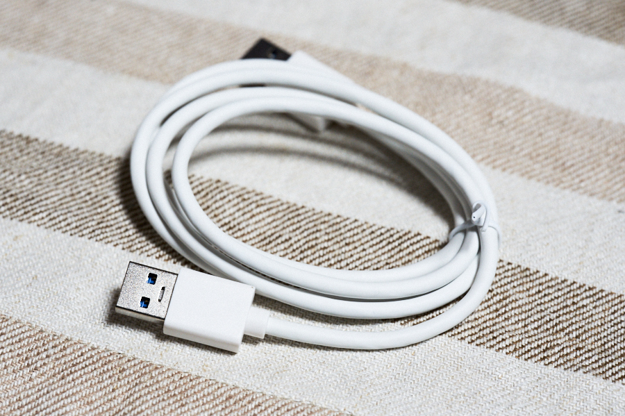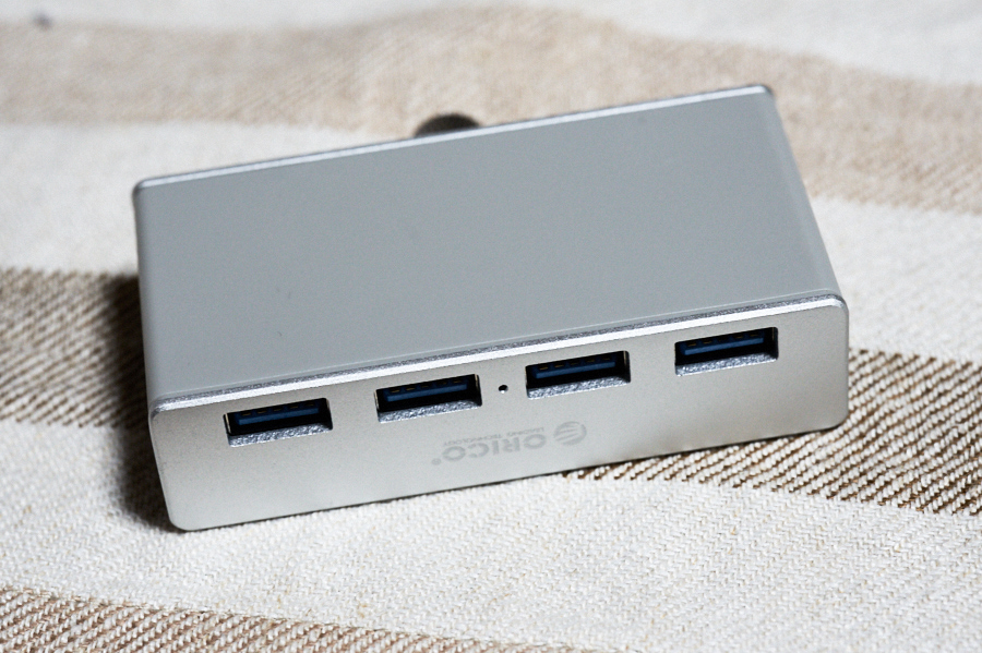 本体はUSB 3.0を4ポート備え、バスパワーで動作する。USBハブとしてのスペックはそれだけで、付属品としてケーブル長約1mのUSBケーブルがあるくらいだ。サイズは突起部を除くと、23mm×89mm×46mm。