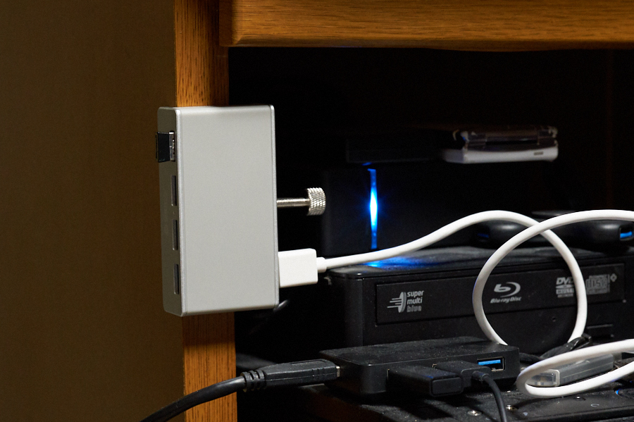 机の端にさりげなく固定できる「クランプ固定式USBハブ」を試してみた