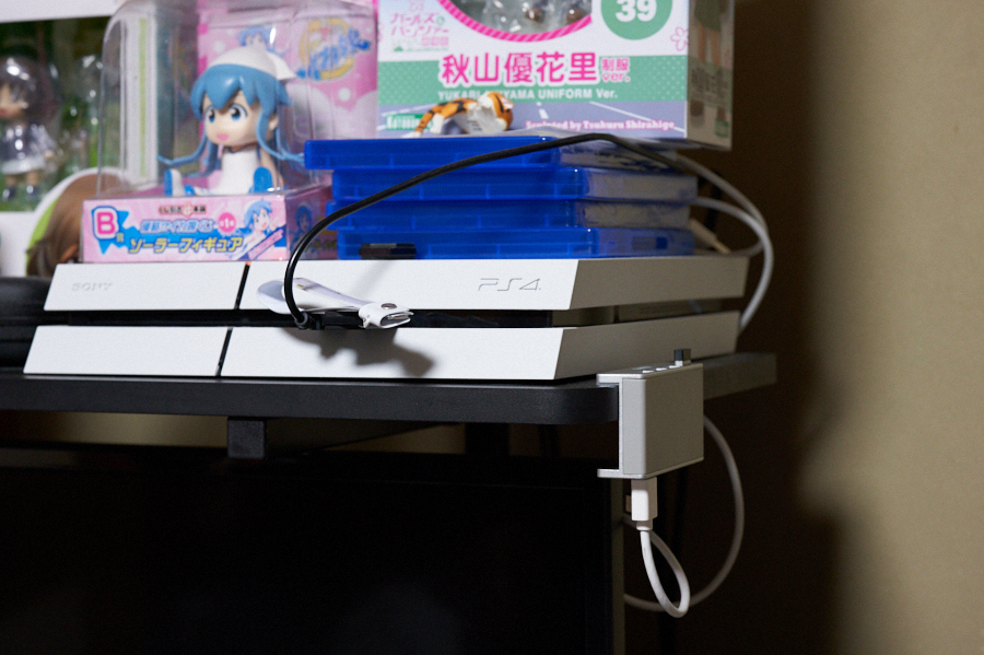 取り付け先としては、ディスプレイの下側や机の端が、まずの候補になる。ただ机の場合は端子部が真上を向くため、ホコリが気になりがちだ。そのため、マウスやキーボード、ゲームパッドなど接続しっぱなしのもの用としてオススメだ。またコネクタカバーを用意しておくのもアリ。