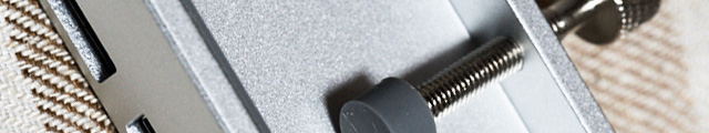 側面から見ると凹型になっており、奥行き10mm、厚さ30mmまでの机などに固定できる。クランプ部分にはゴム足が用意されているが、中央にあるのみなので、丸みのある部分への固定はクッションを挟むか、ゴム足部分を改造しないと難しいだろう。