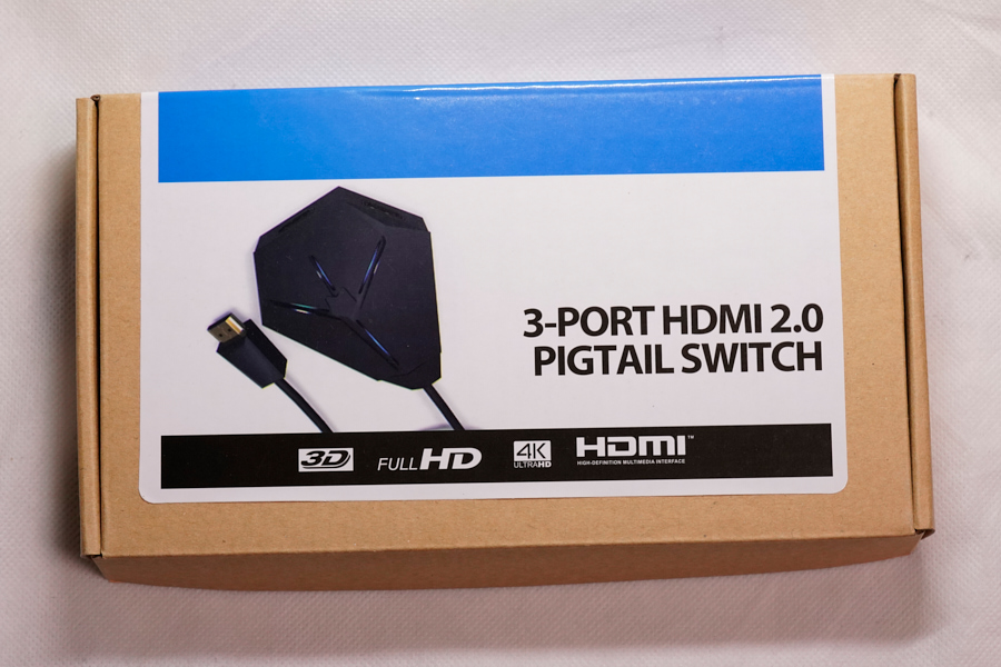形状はやや近未来的な角張ったしずく型となっており、3つのHDMI入力ポートと1つのHDMI出力がある。入力側はいずれも18Gbps伝送に対応しており、製品名にあるように4Kと60Hz、HDRに対応する。