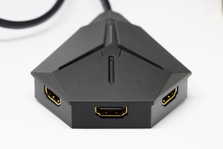 使用方法は本体側のHDMI出力をTVなどに接続したとした場合、入力ポートにそれぞれHDMIケーブルを接続する。本体中央にあるスイッチを押すごとに入力ポートが切り替わっていくので、そのとき使用したいラインを選ぶといった具合だ。電源スイッチなどもないので、操作としてはスイッチを押すだけになる。