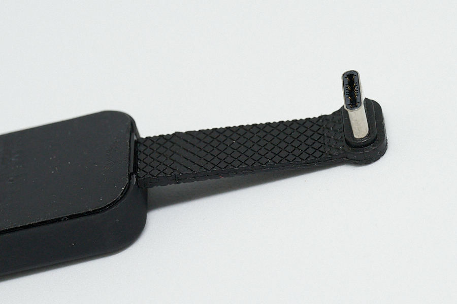 使用時の注意点はType-Cアダプタの扱い。ケーブルが薄いため、捻るようなアクションはNGとなっている。軽く捻ってみてもわかるが、あまり頑丈な印象はない。