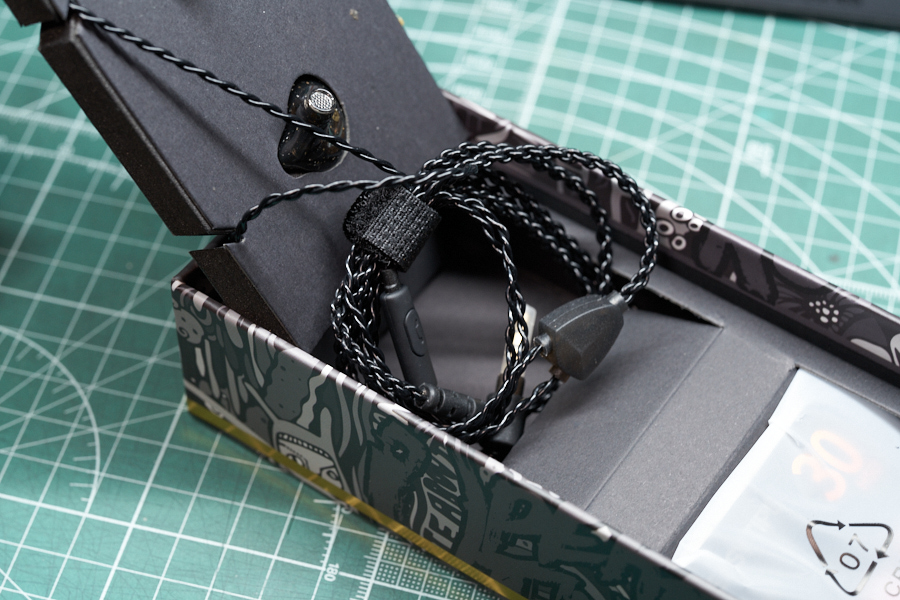 価格帯にしてはしっかりしたパッケージだけでなく、ツイストケーブルであったり、SHURE掛けしやすいようにチューブが用意されていたり、遮音性の高い付属イヤーピースというように本体も堅実な作りだ。