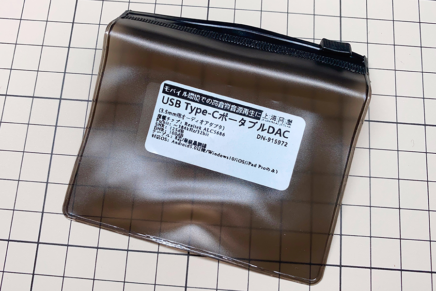 今回紹介するアイテムは「USB Type-C ポータブルDAC(3.5mmオーディオアダプタ)DN-915972」。USB Type-C - 3.5mmミニジャック変換及び、ハイレゾ対応DAC搭載の製品だ。販売価格は税抜き1,790円(税込1,969円)。