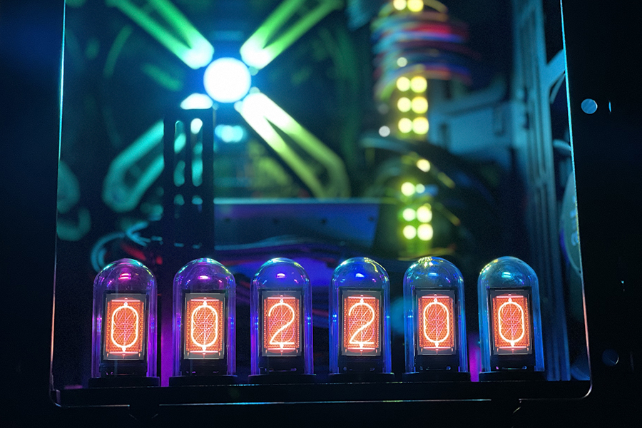 “ニキシー管風”のデジタル置き時計を試してみた、PCケース内に入れてライトアップグッズとしてもアリ