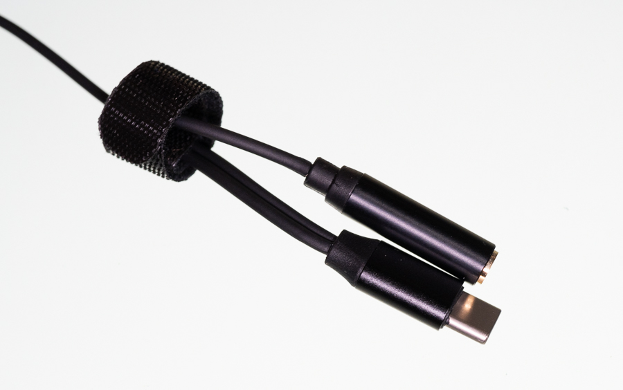 ヘッドフォンやイヤホンの接続は、USB Type-C端子側から分岐した3.5mmピンジャックを使用する。DACを内蔵しており、カタログスペックを見ると16bit/48kHzとあり、ビデオ会議までの待ち時間に音楽を聴いたり、配信時であればゲームの音などを聴くにも問題ナシ。