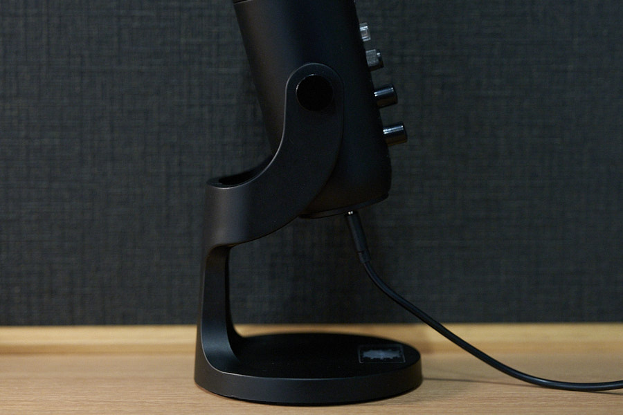 スタンドは取り外し可能だが、マイクブームなどに固定できるネジ穴がなく、マイクブームを使用する際はやや手間がかかる。逆にスタンドは下に掲載する写真のようにマイク本体を倒した状態にもできるため、卓上での利用シーンを想定してみるといいだろう。