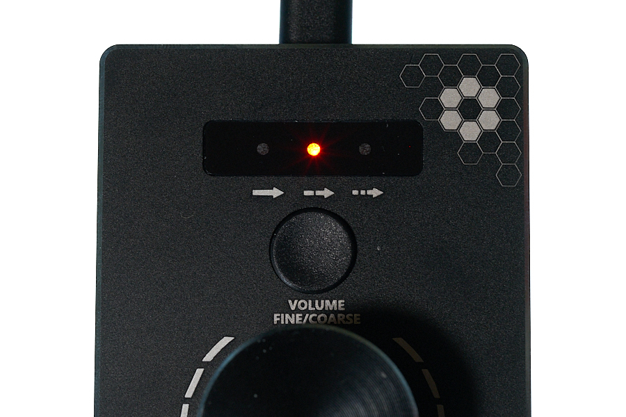 本体中央にあるアルミ製のノブを左右に回転させることでボリュームを調整できると、ざっくりいえば、それだけだ。と言っても出番は意外にも多く、作業やゲーム中のボリューム調整頻度を思い出してみて欲しい。