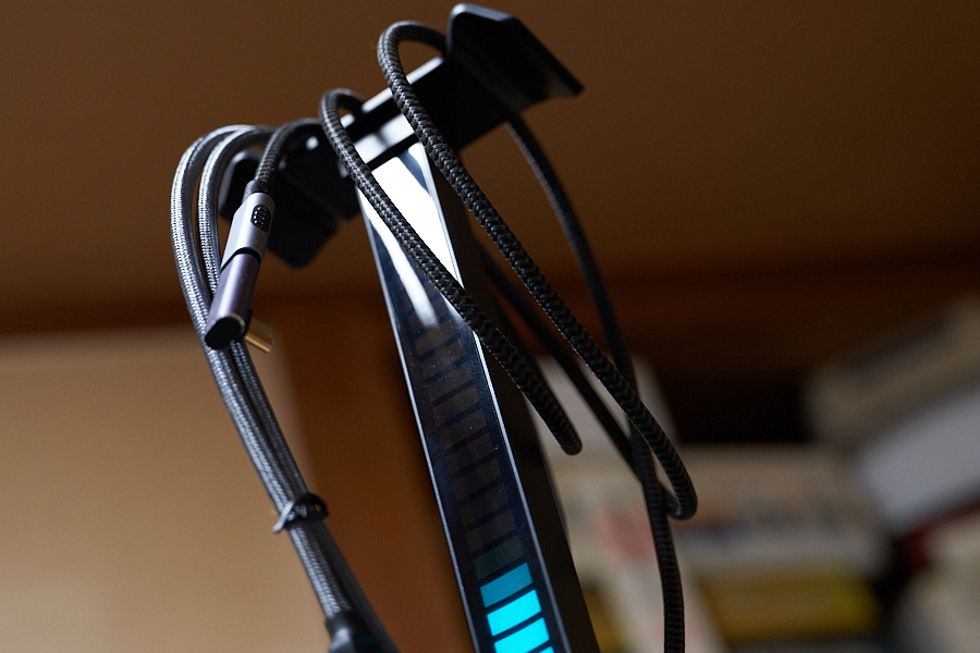 以前より人気のあるマイクによる音検知で動作するオーディオレベルメーターに、せっかくPCデスク上に配置するなら実用的な機能もあったほうが良いのではとDAC、USBハブ、ヘッドフォンスタンドとしての機能が追加した製品です。製品を二組ご用意いただいてモニターの左右に設置すると、かなりいい感じの雰囲気になるのでおすすめですよ。