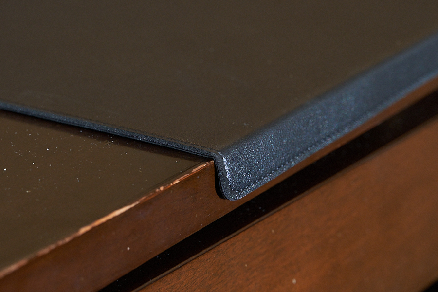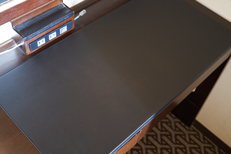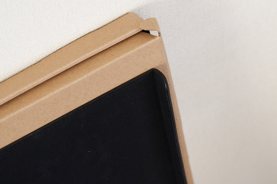 本製品は大判PVCフェイクレザーを採用したマウスパッドで、800mm×400mmと巨大である。特徴はデスクの角のカバーとマウスパッドの端の擦れ、マウスパッドのズレの抑止目的で用意された折り曲げ部分だ。約20mm折れ曲がっており、机の角にひっかける形でセットする。カラーはブラックのみになっており、落ち着いた雰囲気も作業向けといえるだろう。