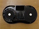 本体は、左右に2つのターンテーブル型のダイアルが搭載されたDJブース的なデザインでまとめられている。大きさは、幅300×奥行き158×高さ63mmとそこそこ大きい。ただし重さは約620gと外観から受ける印象ほど重くはない。ちょっとした持ち運びでも苦労しない程度だ。