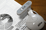 実際に本体を書類に当ててみると、このような感じになる。読み取る単語の位置はガイドの左端からになる。この状態では「OCR」「and」あたりだ |