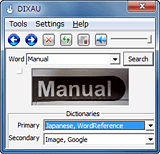 そして、辞書サイトは2つまでを専用ソフトの画面最下段にあるリストから選択できるのだが、そのラインナップもかなりユニーク。とくにデフォルトの2つ目(セカンダリ)は、Googleの画像検索になっている。