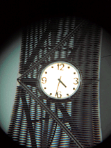 | 同じ位置から撮影した、レンズを外した状態と、レンズを付けた状態での写真(電話機は京セラ WX340Kを使用)。望遠倍率が8倍と高いだけあり、レンズを外した状態ではまったく見えない時計の文字盤が余裕で撮影できた | |