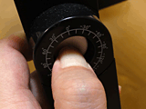 関節部にある、ロック解除用の銀色のボタンとの角度表示。細かな角度合わせは、この表示を見ながら調整すればOKだ |