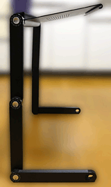 そしてもう一つの特徴が、脚の長さの調整が自由にできる点。その秘密は、脚部分の構造にある。片方の脚ごとに3箇所の関節が組み込まれており、角度を自由に変えられる。脚に2つと天板にあるこの関節の角度を自由に変えることで、さまざまな場所で便利に使えるというわけだ。