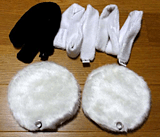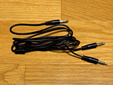 | 付属する交換用カバーの一覧。これが(まがりなりにも)ヘッドホンの付属品とは思えない? | ヘッドホンケーブルの接続端子。簡単に着脱できるので、純粋なイヤーマフとして使う場合にはコードが邪魔にならない、嬉しい設計だ | ヘッドホンコードももちろん付属。端子形状は入力(危機)側がステレオミニプラグ、出力(ヘッドホン)側ミニプラグ×2となっている |