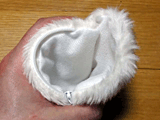 そんな本機の外観は、ヘッドバンド部までを含めて、本体全体が柔らかい起毛素材のカバーで覆われている。ヘッドホンと知らずに見ると、まさしくイヤーマフそのものに見えるだろう。毛の部分の光沢感も十分で、見た目からして暖かそうだ。