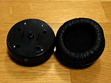 | カバーを全て白に交換した状態。黒の状態とはかなり印象が異なる。仕上げや手触りも高級感があるので、機会があったら実物を見てほしい | 耳当て部分のカバーはファスナーで留める方式なので、取り付けは簡単だ | ドライバーユニットを取り外してみたところ。イヤーパッドはいわゆる耳覆い式になっている |