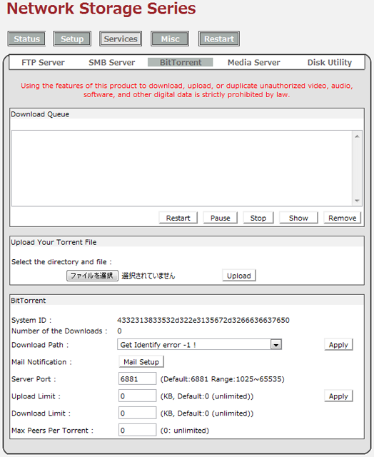 サーバーとしての機能は、ファイル共有(Sambaサーバーによる)、FTPサーバー、メディアサーバーが主要なところ。サポート可能なディスク容量は2TBまでで、ファイルシステムはFAT32にのみ対応。NTFSでフォーマットされたドライブは認識できないので要注意。