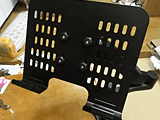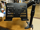 | ラップトップPC用「DN-DMA620A」のパソコン本体設置用トレイ。これは別製品「DN-LDM01」となっているので、セットで購入する必要がある。 | パソコン本体設置用トレイで、パソコン本体に触れる箇所には滑り止めと傷防止用のカバーが掛けられている | アーム側のネジ(中央の4箇所)もカバーがあるので、ラフに置いても大丈夫だ |