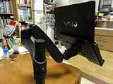 ご存じない方のために解説しておくと、アームとは、机などに装着してディスプレイなどを支えるための機器。構造は関節付きのデスクライトに似ており、ライトの代わりに液晶ディスプレイなどがつく。