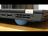 使う時のちょっとした注意点は、ノートパソコンのゴム足を避けるように置くこと。ゴム足に重ねて設置してしまうと、当たり前だがぐらついてしまうからだ。