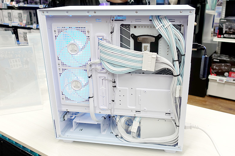 ウォーターチャレンジコラボモデルでは、PCケースや電源スリーブケーブルの色の変更も可能だ。好みのパーツを組み合わせられるのは自作の醍醐味だが、このコラボモデルでも、CPUとPCケース以外のパーツの変更であれば相談に応じてくれる(ケースのカラー変更は可能とのこと)。