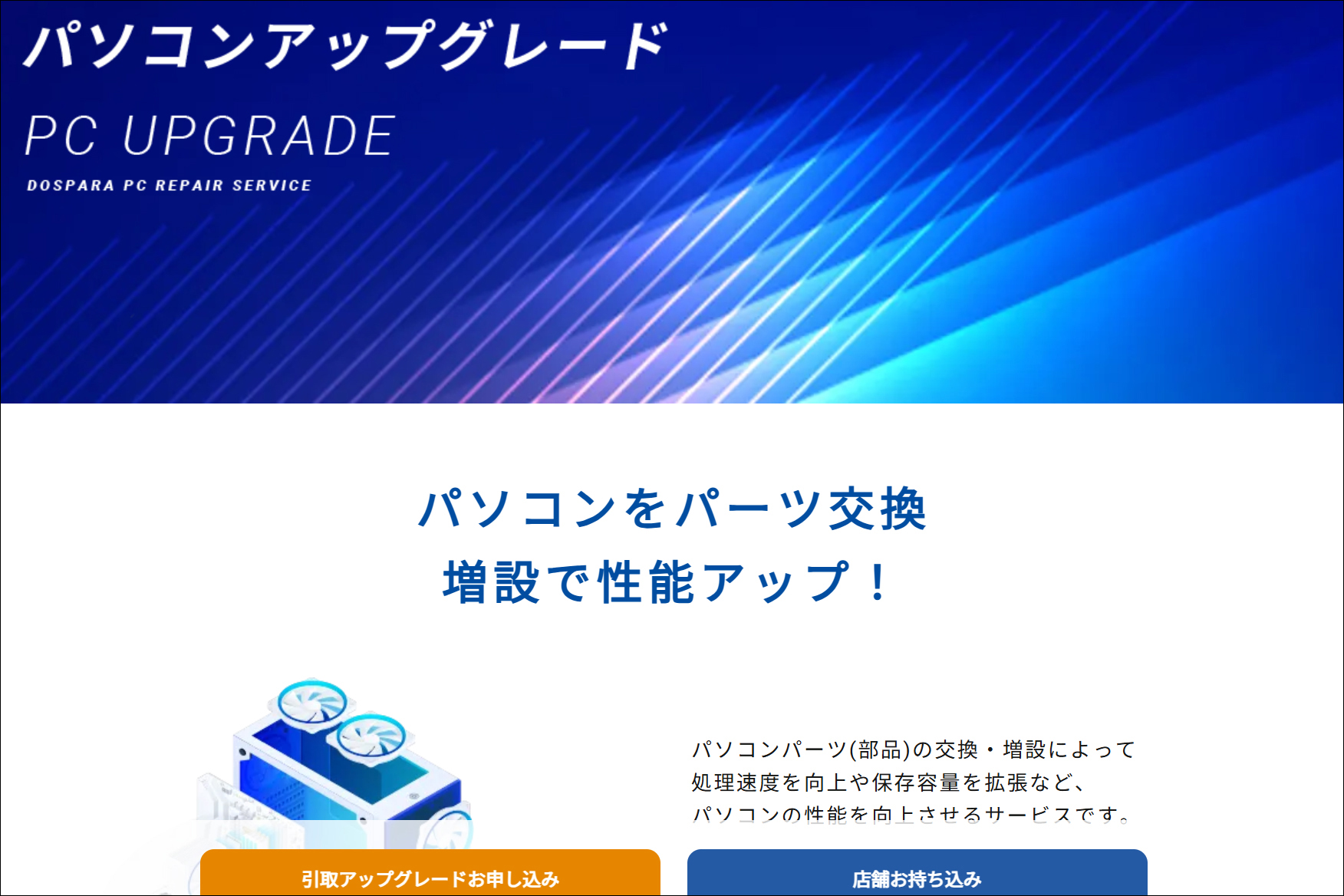 PC自作が趣味という方であれば嬉々として作業できるパーツ交換ですが、そうではない人にとっては、かなりハードルの高い作業です。そんなときには、ドスパラの「パソコンアップグレード」というサービスを活用してみてはいかがでしょうか。このサービスではGALLERIAをはじめとするドスパラ/サードウェーブ製のBTO PCはもちろん、ほとんどのメーカーのデスクトップおよびノートPC、自作PCも対応OK。パーツの選定から組み込みまでまとめてお願いできるので、そこまでPCに詳しくない人でも安心です。