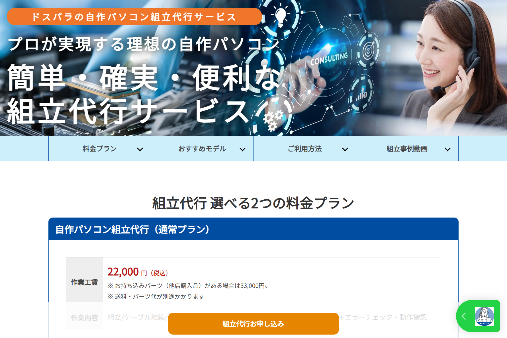 また、店舗およびネット申し込みの有償サービスとして、購入したパーツを実際にPCとして組み立ててくれる「自作PC組立代行サービス」も用意されています。PC自作に興味はあるけど、組み立てに自信がない・作業時間が取れない・プロのようにきれいに/カッコよく仕上げてほしい、そんな場合にとても便利です。