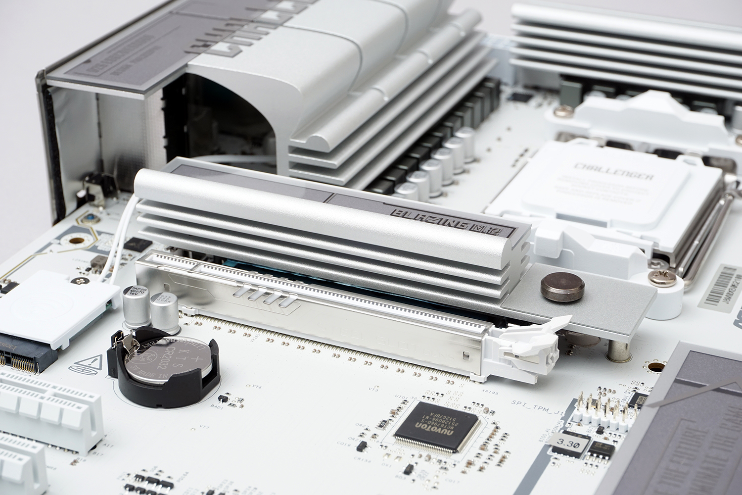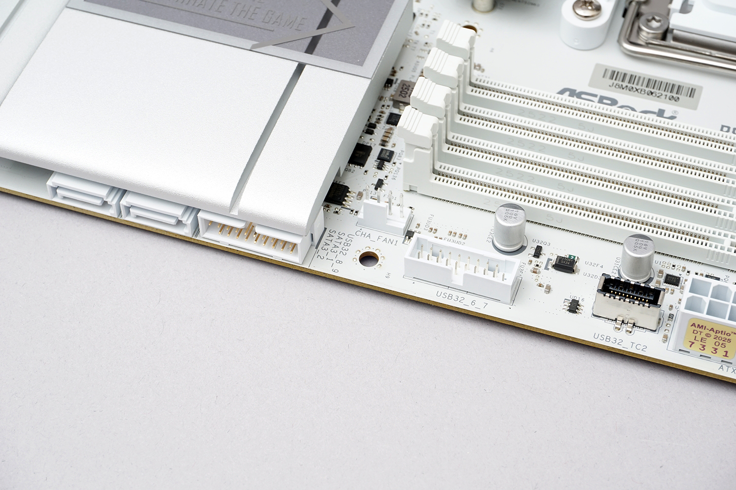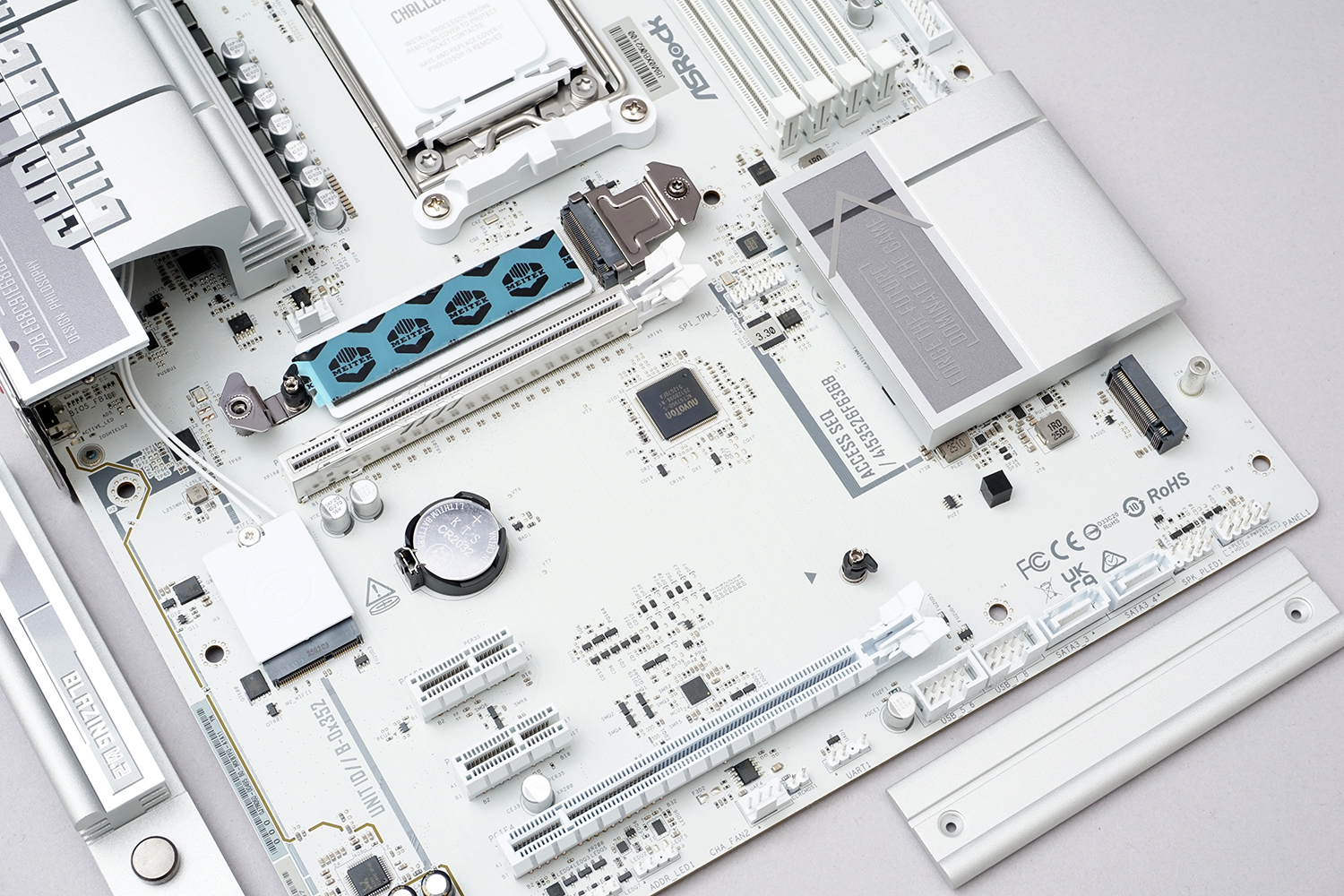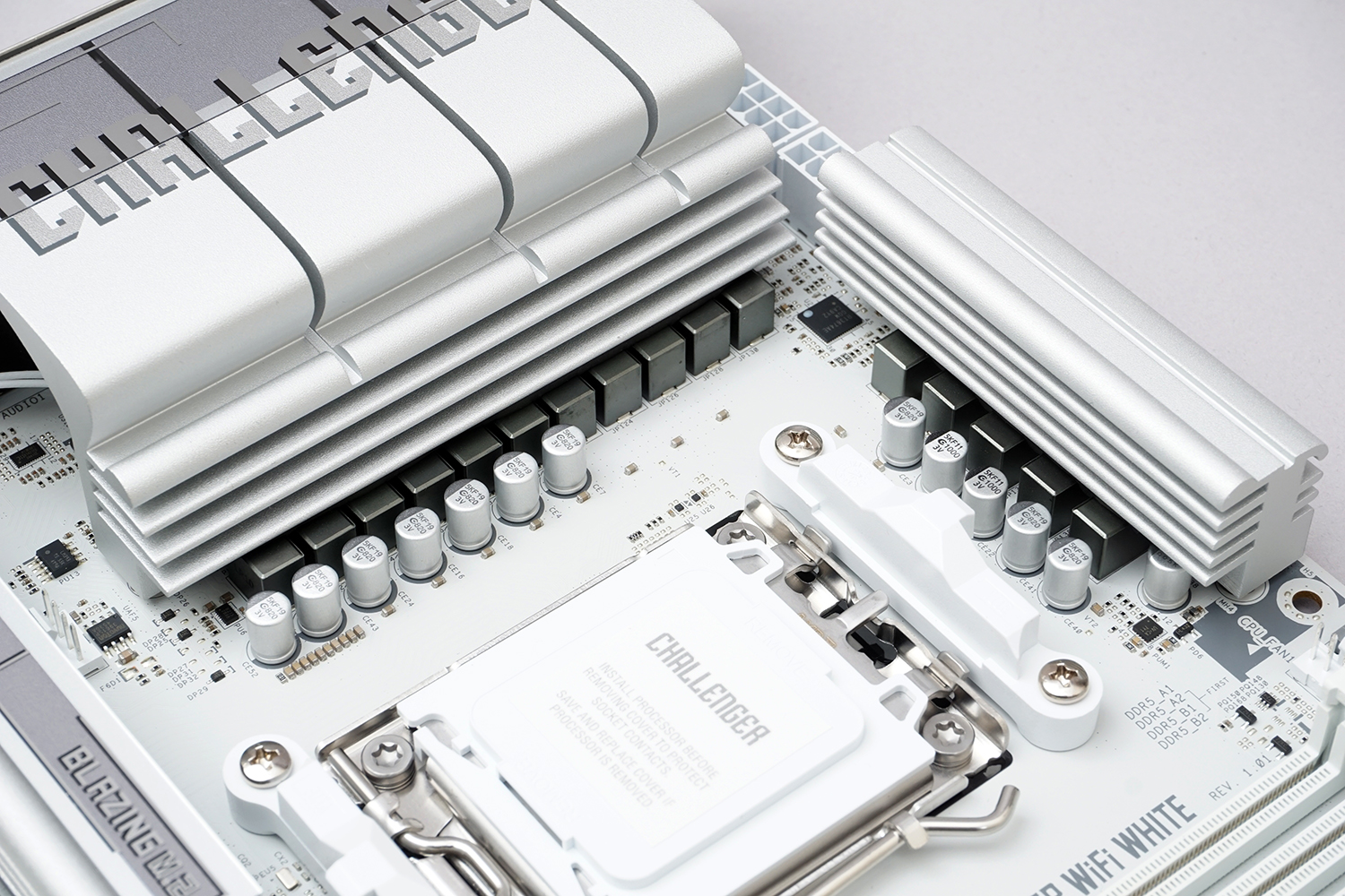 まず特徴的なのが徹底したカラーリングの統一だ。ブラックのB850 Challenger WiFi、ホワイトのB850 Challenger WiFi Whiteの2モデルが販売されているが、どちらもヒートシンク、メモリスロット、コネクター類に至るまで、徹底して同色のカラーに仕上げられている。白なら白、黒なら黒、と色を統一してPCを自作したい場合には、これ以上なくピッタリのマザーボードだ。