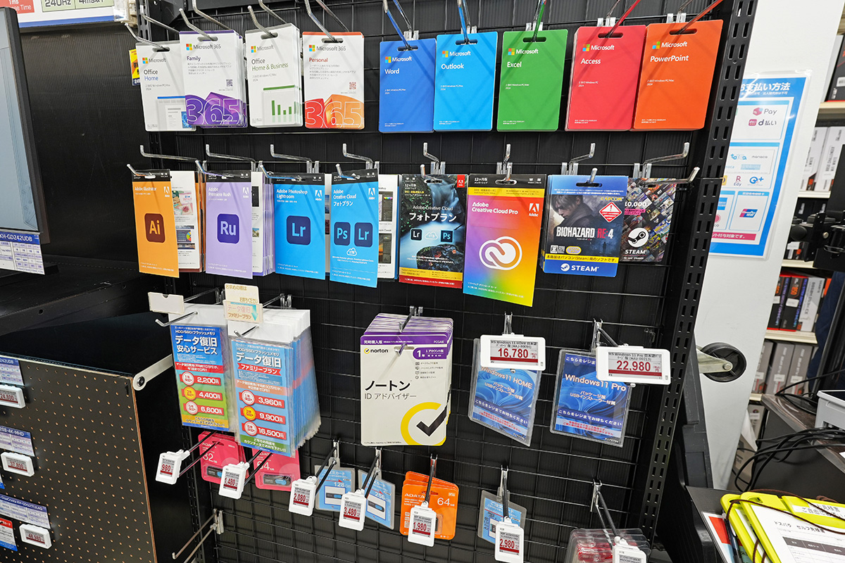 CORSAIRのXENEON EDGEなどのマニアに人気のモデルの在庫品が用意されていたり、クリエイター向けアプリケーションのライセンスカードも多数扱われていたりする点も印象的だった。