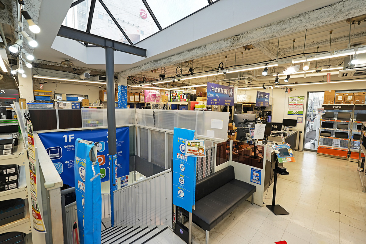 2階は中古品とゲーミングデバイスのフロアにリニューアルされている。PC店では珍しく天窓があり、開放感のあるエリアとなっている。横浜駅周辺エリアでは中古品の販売/買取のニーズも高いとのことで、中古品取り扱いの強化もリニューアルのポイントとなっている。