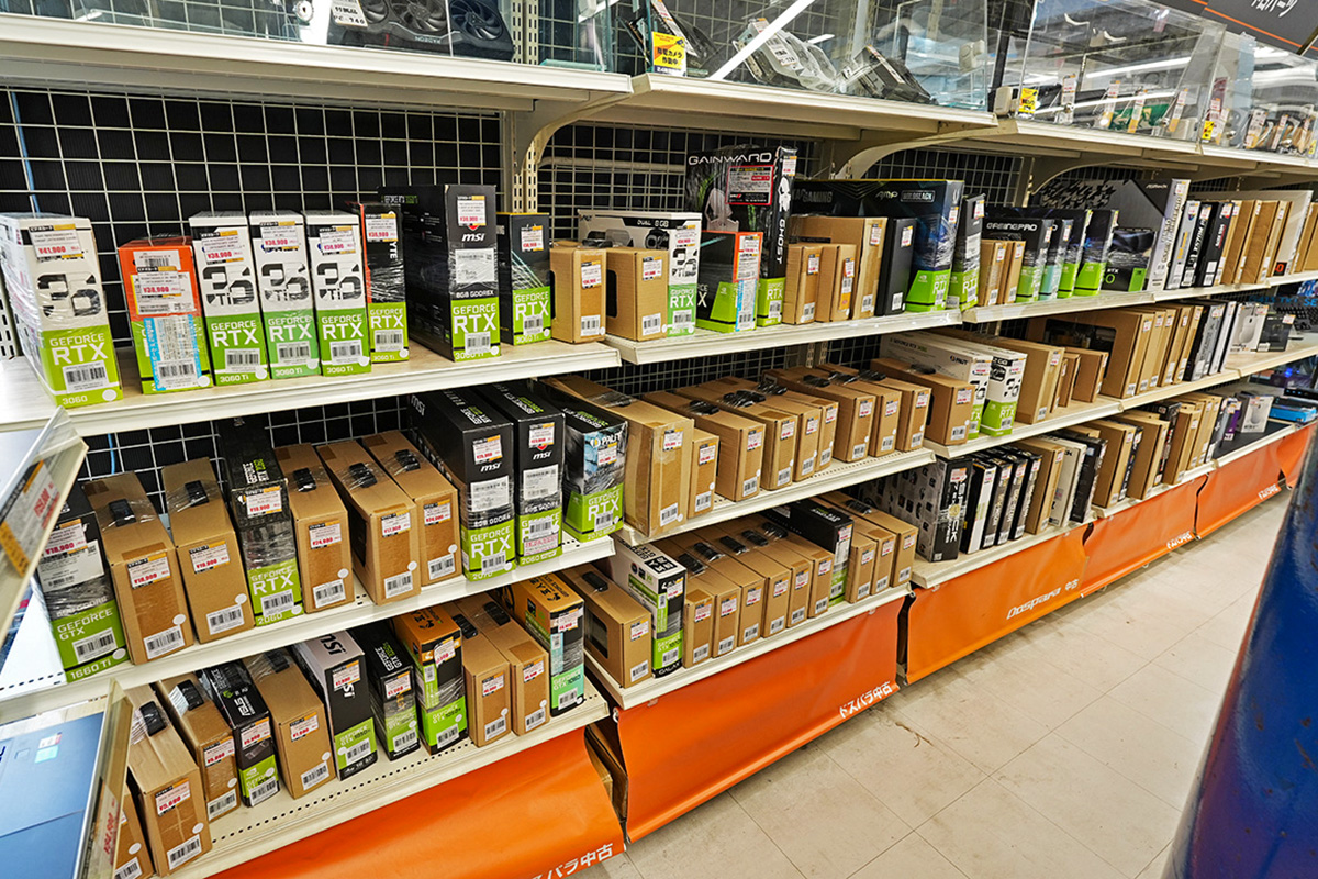 スペースは限られているが、PCパーツの品揃えは充実しており、秋葉原まで行かなくても好みのパーツが選べる。ビデオカードは市場全体で品薄傾向となっているが、ドスパラでは在庫の確保に注力しているとのこと。力の入れ具合が伝わってくる。
